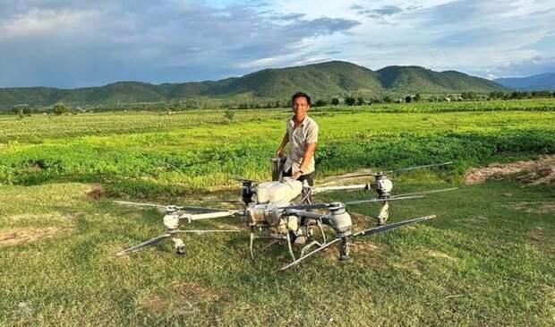 Во Вьетнаме фермер спас мальчика и девочку во время наводнения, вытащив их из воды крупным агродроном.