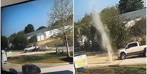 Камера видеонаблюдения зафиксировала момент, когда жительница Сан-Антонио, США, оказалась внутри вихря, которого часто называют "пылевым дьяволом". Запись необычного явления собрала миллионы просмотров в социальных сетях.