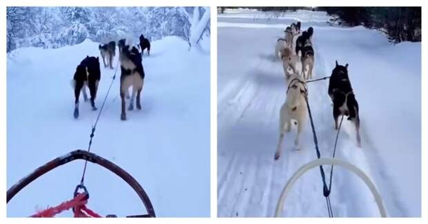Ездовые собаки во время заездов делают свои дела на ходу. Вот как это выглядит со стороны.