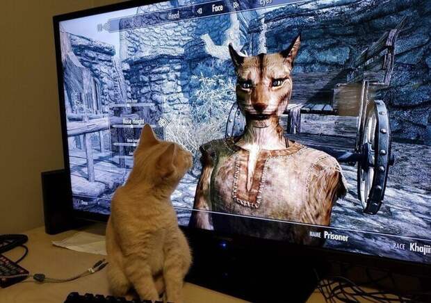 В рыжем коте вдруг вспыхнула искра памяти, и он, словно пробудившись от долгого сна, протянул лапу к мерцающему экрану, приветствуя призрачные силуэты виртуальных родичей.