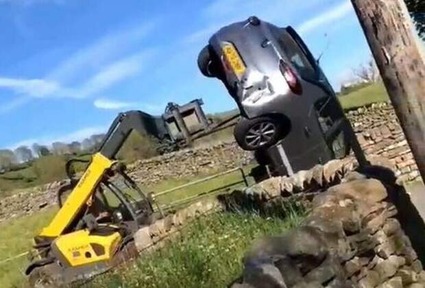 Пара нетрезвых людей оставила свой автомобиль прямо на участке фермера, перегородив ему въезд и выезд. Когда хозяин попросил переставить машину, они отказались, а один из них даже ударил его. Ответ мужчины попал на видео.