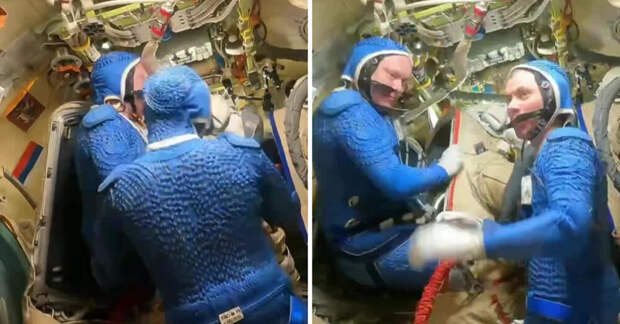 В российские «Орланы» буквально входят через «дверь» в спине: сначала просовывают ноги и подключают трубки системы охлаждения нательного костюма, по которому циркулирует вода, а затем протягивают руки в рукава и «ныряют» туловищем. Ну а финально скафандр помогает закрыть уже напарник.