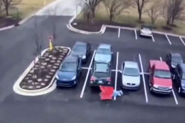 Уличная камера запечатлела инцидент на видео. На кадрах видно, как красная магазинная тележка заезжает на парковку и сбивает пенсионерку, стоящую возле автомобиля. Далее на записи видно, как тележка падает на пострадавшую.