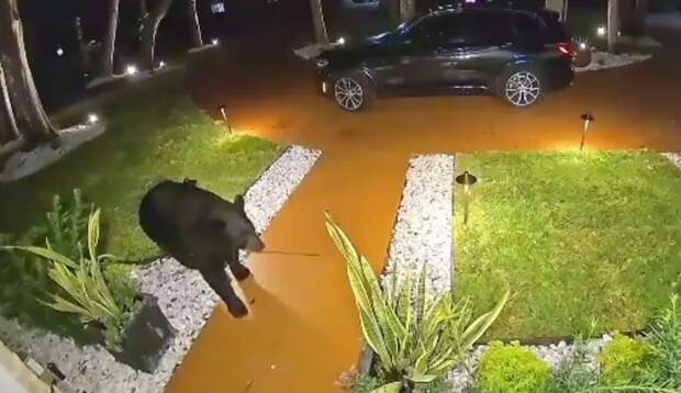 Как только курьер оставил продукты, к дому неторопливо подошел косолапый, взял пакеты и ушел наслаждаться добычей. Бандита засняла камера видеонаблюдения.