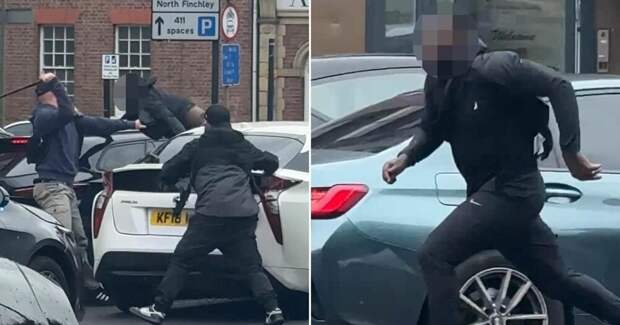 Очевидцы поделились кадрами ареста водителя в пригороде Лондона. Офицеры в штатском останавливают автомобиль и начинают бить стёкла, но мужчина убегает.