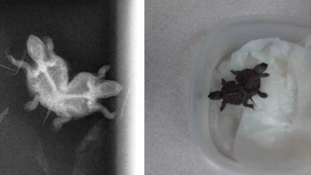 Сотрудники приюта показали сиамских черепах-близнецов, сросшихся в тазовой области. Несмотря на редкую аномалию, черепахи чувствуют себя хорошо