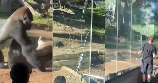 В эти выходные посетителей зоопарка Сан-Диего охватила тревога. Десятилетняя западная равнинная горилла неожиданно атаковала стеклянный барьер своего вольера и разбила один из трёх защитных слоёв.