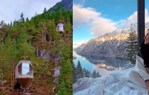 В Норвегии есть отель, дающий возможность пожить в домике на дереве с повышенным комфортом. Каждый домик рассчитан на 2-4 гостей.