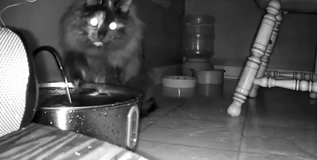 Владелец собаки и трех котов, которого зовут Дрю, постоянного видел лужи на полу своего дома и наконец установил камеру для наблюдения за домашними животными, чтобы поймать виновника.