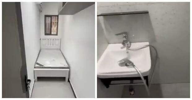 В жилой зоне смогла уместиться только кровать, которая заняла почти всё место, но хоть жильё ему попалось с окном, что уже редкость в таких помещениях.