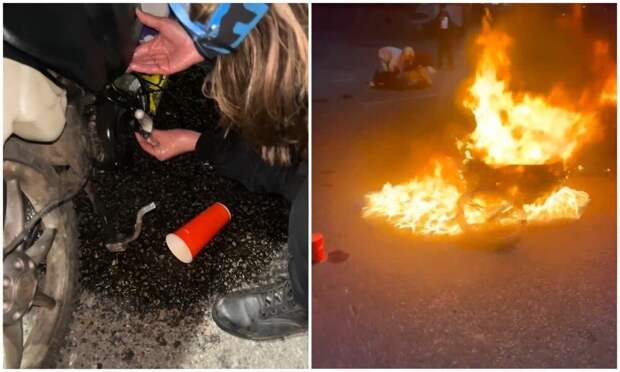 Юный "спортсмен" пытался починить пробитый топливный бак питбайка, а в этот момент его друг ради прикола поднёс зажигалку. Осторожно, много визга и мата.
