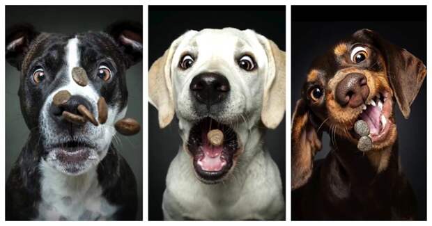 Фотограф запечатлел нескольких собак, которые пытаются поймать еду в воздухе.