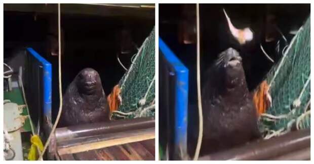 На Курилах сивучи сами забираются на суда, чтобы рыбаки их покормили. В данном видео усатый гурман терпеливо ожидает от рыбаков угощения.