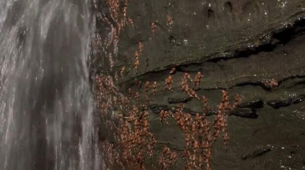 Сотрудники экологической полиции бразильского штата Мату-Гросу-ду-Сул стали свидетелями необычного явления на одном из водопадов.
