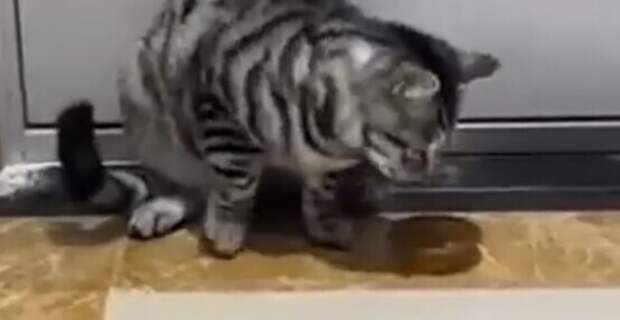 Коту настолько понравилась еда в миске, что он решил доесть всё до последней крошки. Однако сделать это оказалось не так уж и просто.