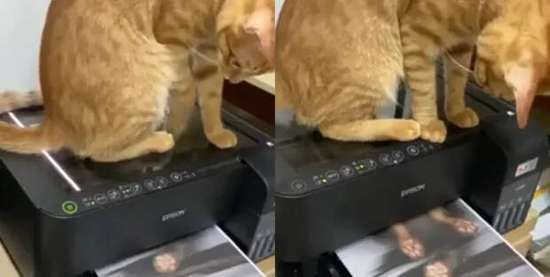 Работница офиса из США поймала момент, когда кот начал печатать свое отксеренное изображение. В сети пошутили и одобрили его навыки "ответственного секретаря".