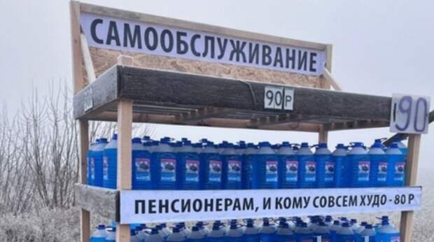 В Самарской области решили провести акцию, рассчитанную на честность и порядочность граждан. Возле дороги установили стеллаж с бутылками незамерзающей жидкости, которые можно было купить методом самообслуживания.