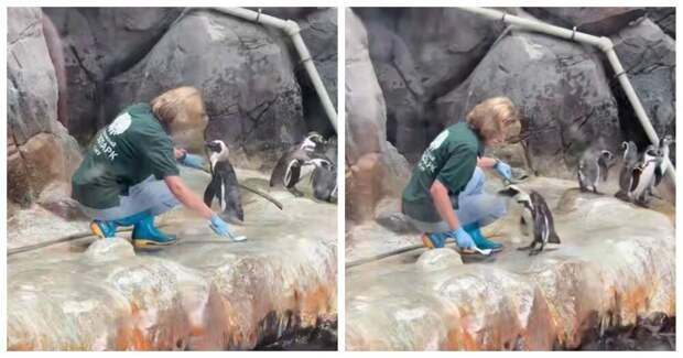Неожиданный прилив нежности у пингвина из Московского зоопарка попал на видео.