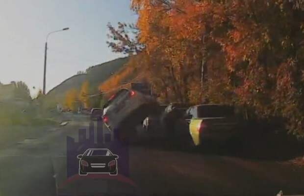 В Красноярске женщина управляя автомобилем Лексус врезалась в припаркованные автомобили и перевернулась. Никто пока не пострадал.