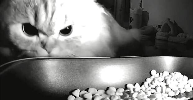 На камеру видеонаблюдения попало недовольное и постоянно голодное существо.