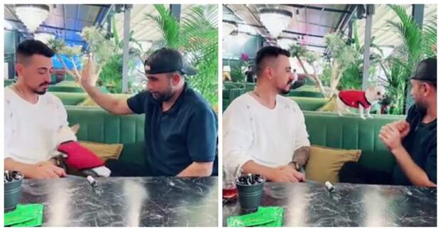 Пёс бросается защищать своего хозяина, когда видит, как другой мужчина «нападает» на него.