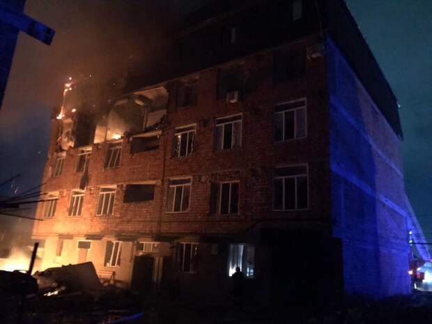 В поселке Семендер под Махачкалой после взрыва газа в жилом доме разгорелся сильный пожар. Огонь охватил верхние этажи здания и распространился моментально.