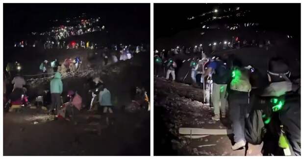 Ничего необычного, просто очередь из желающих подняться на японскую гору Фудзияма к рассвету.