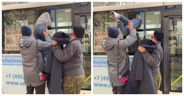 Для устранения возникшей трудности, юная особа проникла внутрь автобуса через небольшое окно, дабы разблокировать двери.
