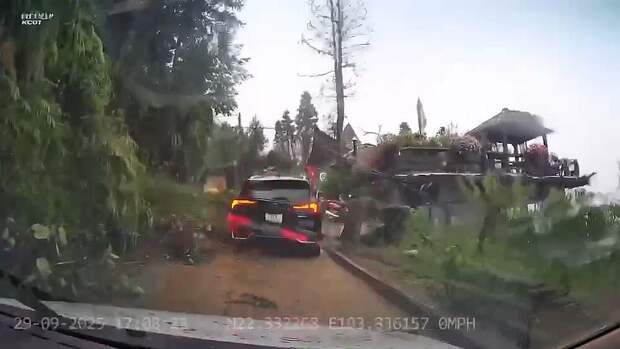 В туристической деревушке в окрестностях города Сапа, Вьетнам, после ливня сошел оползень. Машина пролетела несколько десятков метров по склону, но водителю и двум его пассажирам крупно повезло - они отделались лёгкими травмами.