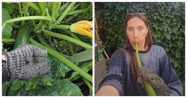 На даче девушка поделилась простым способом: из стебля кабачка можно сделать дудку, которая издаёт довольно громкий звук. Подобные поделки из растений раньше часто использовали дети в деревнях для игр и забав.