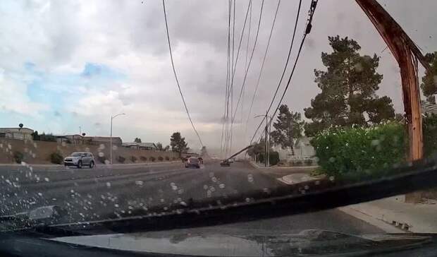 Видео из Лас-Вегаса. Говорят, там штормило. Повалило около 50 столбов, без света остались 33 тысячи человек. Никто из водителей серьёзно не пострадал.
