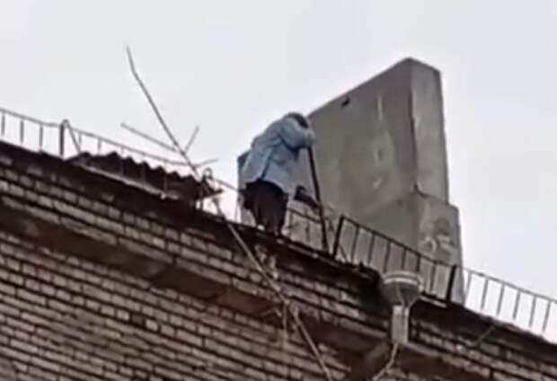 Как выяснилось, престарелая женщина уже не первый год очищает крышу, чтобы её квартиру не затопило с приходом тепла. А управляющая компания тем временем бездействует.