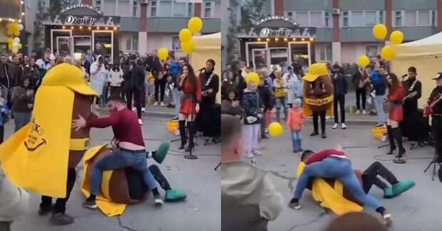 Самое интересное, что собравшиеся на площадке люди подумали, что это часть представления, и не стали разнимать потасовку.