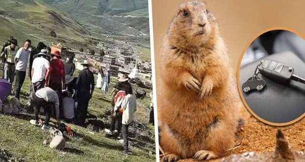 Турист рассказал, что сурок схватил ключи от его машины и утащил их в свою нору, пока он с друзьями осматривал окрестности. В этот момент дети кормили животных фруктами.