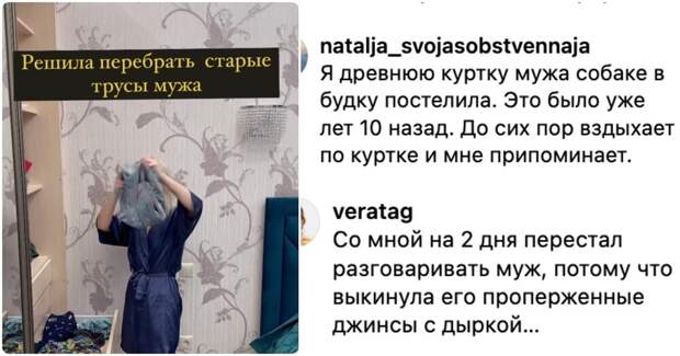 Наталья Королёва опубликовала ролик, на котором показывает, что выбрасывает дырявые трусы мужа. Оказалось, что она не одна такая. Девушки в комментариях начали делиться своими историями.
