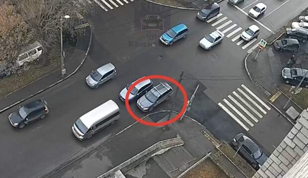 Водитель кроссовера посчитал, что его не пропустили при проезде перекрёстка (по крайней левой полосе, по которой он двигался, возможен был только поворот налево), и, затаив обиду, догнал "обидчика" на следующем перекрёстке — Лебедевой и Перенсона. Красноярск.