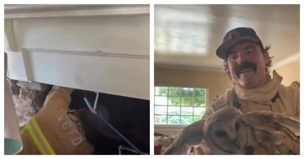 В США приехавшие на вызов пожарные обнаружили в камине сову. Застрявшую птицу почистили и выпустили на волю.