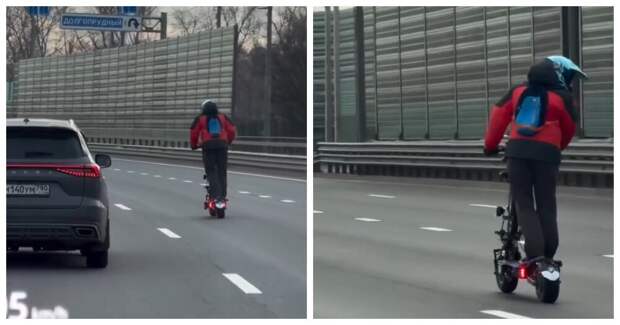 Молодой человек на электросамокате мчался по столичным дорогам быстрее потока, обгоняя автомобили и рискуя попасть под колёса. Очевидцы засняли экстремальную поездку на видео.