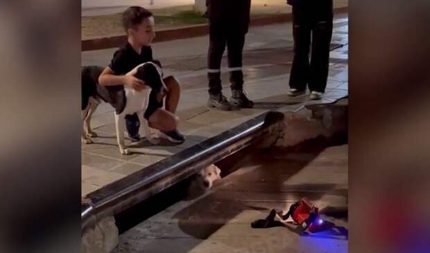 Семья прогуливалась по улице аргентинского города, когда услышала громкий лай. Подбежав к хвостатой, они увидели, что она стоит около канализационной трубы, откуда торчала морда другой собаки.