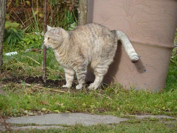 Многие хоть раз видели, как коты метят территорию. Однако почему они делают это «задом наперёд» ?