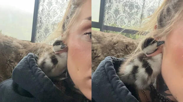 В Нидерландах утёнок устроился прямо в ухе женщины — в том самом туннеле, куда обычно вставляют кольцо. Как птенец туда попал — загадка, но выглядит он вполне довольным.