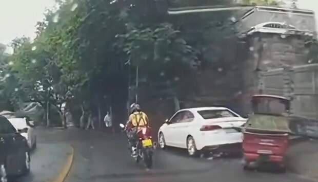 Мотоциклист попал в смертельно опасную "ловушку". Удивительно, но он остался жив. Китай.