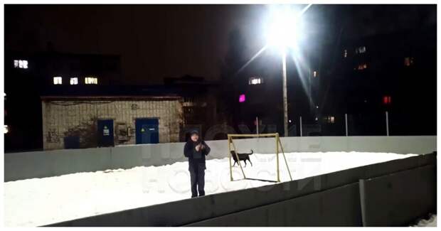 В Нижегородской области мужчина выбрал странное место для выгула собак. Он привёл своего питомца в хоккейную коробку