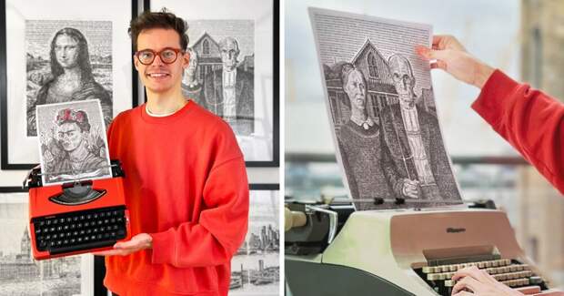 Художник Джеймс Кук нашёл неожиданное применение пишущим машинкам. Мужчина создает впечатляющие детализированные пейзажи и портреты на листах бумаги.