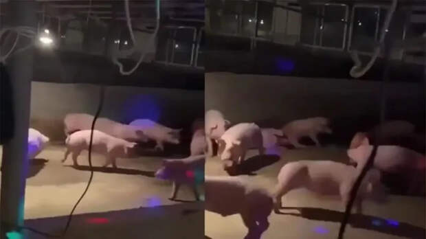 Фермер организовывает небольшие дискотеки для своих свиней. Мужчина включает животным различную танцевальную музыку, чтобы они веселились.