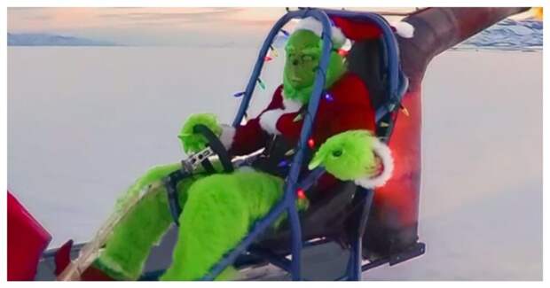 Инженер-энтузиаст Роберт Мэддокс известен своей любовью к установке реактивных двигателей на неподходящие для этого виды транспорта. В одном из своих видео он закосплеил Гринча на реактивных санях.
