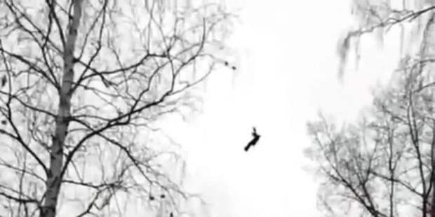 Птица запуталась в леске, натянутой между деревьями на уровне четвертого этажа. В таком беспомощном положении она провисела четыре дня.