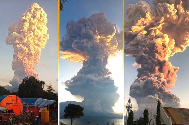 В Индонезии на острове Флорес началось извержение вулкана Левотоби Лаки-лаки. Столб пепла поднялся на высоту более 11 километров. Жуткое, но красивое зрелище.
