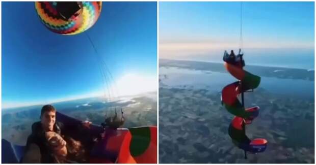 Молодые люди из Бразилии скатились с «самой высокой горки на планете». Горку подвесили в небе на воздушном шаре на высоте в два километра.
