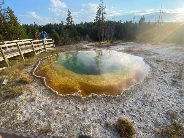 Если бы природа могла рисовать радугу, она была бы похожа на озеро «Утренняя слава» (Morning Glory Pool) — одно из самых красивых и известных термальных озёр Йеллоустона. Но за этой красотой скрывается грустная правда.